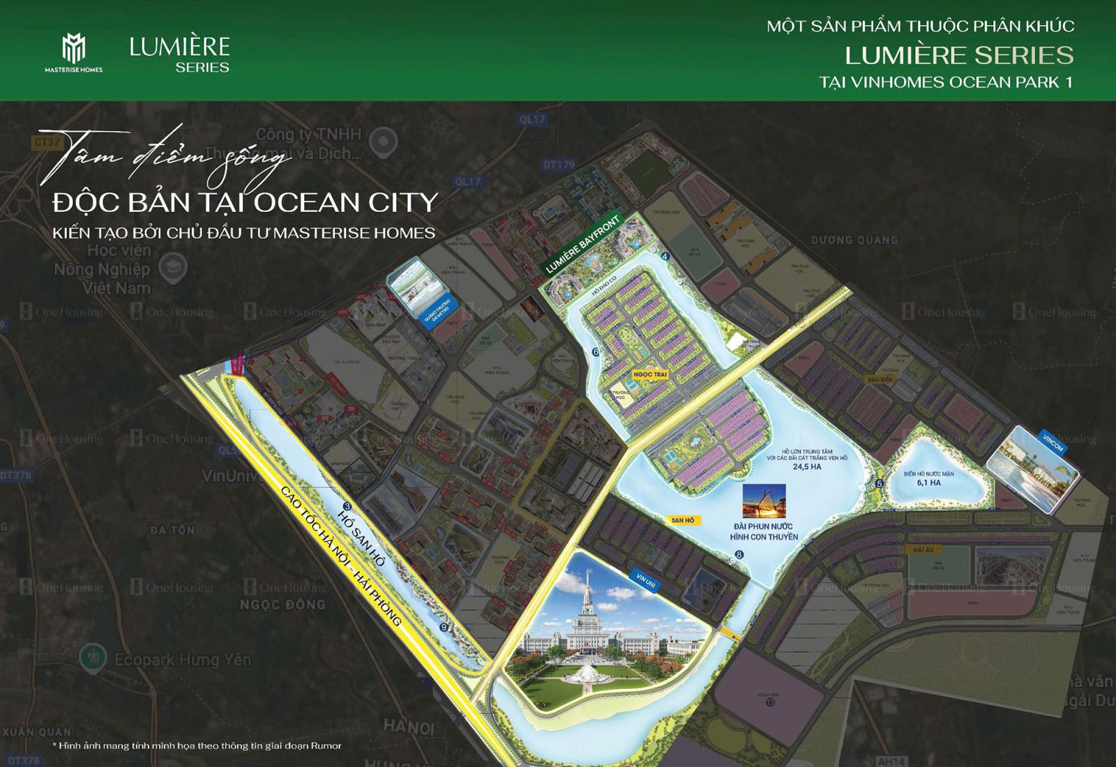 Lumiere Bayfront là dự án căn hộ cao cấp thứ 3 của Masterise Homes tại đại đô thị Vinhomes Ocean Park 1, tiếp nối thành công từ Masteri Waterfront và Masteri Lakeside. Với vị trí đắc địa ôm trọn hồ Đảo Cọ, quảng trường The Ocean View cùng tiêu chuẩn sống thượng lưu mang dấu ấn “Lumiere Series”, dự án hứa hẹn trở thành biểu tượng an cư – đầu tư đẳng cấp bậc nhất phía Đông Hà Nội.